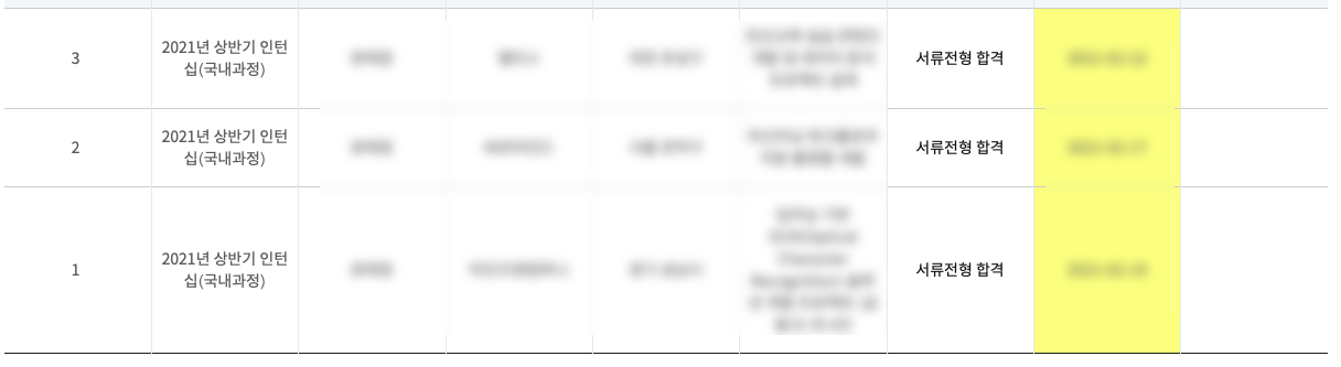 서류 전형 결과 3곳 모두 서류는 통과였다 ! 😆