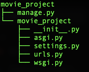django-admin startproject movie_project # movie_project라는 이름으로 장고 프로젝트 생성