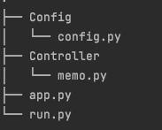 일단 한 파일에서 모든 일을 처리하지 않기 위해 폴더를 나누었지만 사실은 간단한 flask를 사용한 CRUD 구현을 위한 프로젝트기 때문에 굳이 이 과정은 하지 않아도 된다. 그렇지만 추후에 프로젝트가 커질 때를 대비해서 미리 분해하는 것~