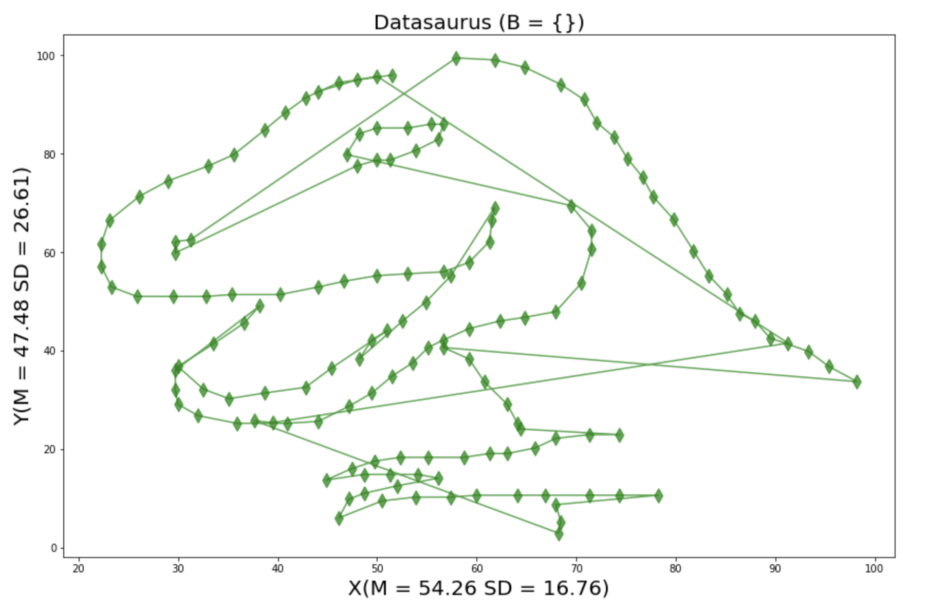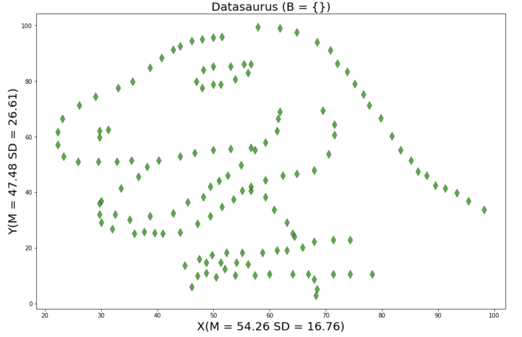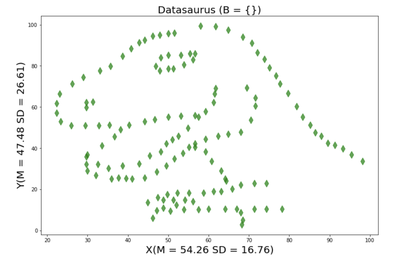 plt.title('Datasaurus (B = {})',fontsize = 20)