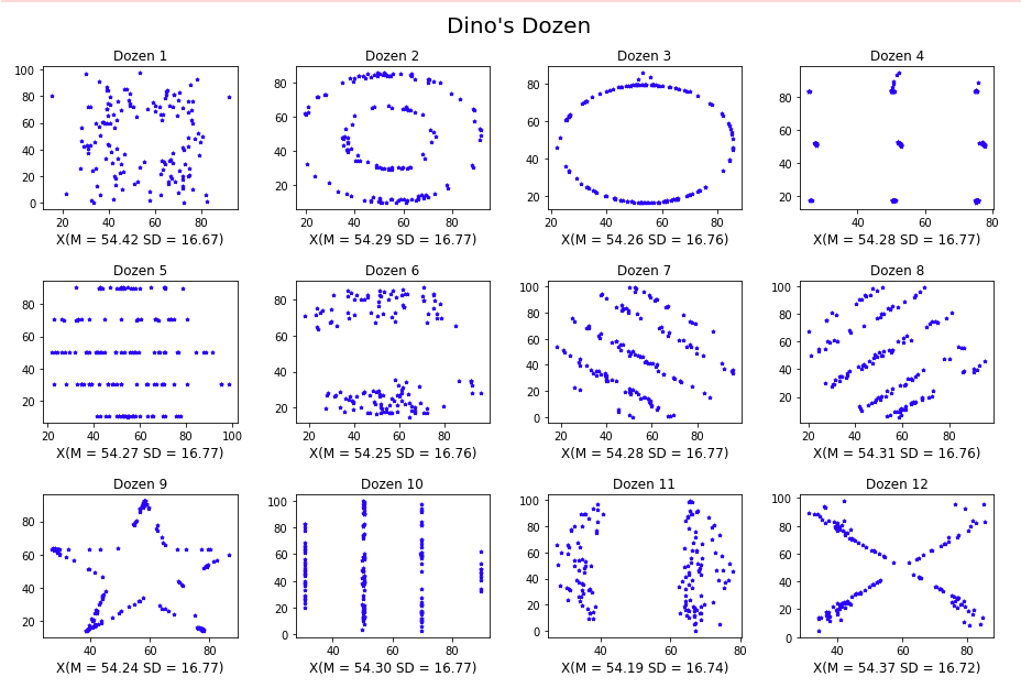 plt.suptitle('Dino\'s Dozen',fontsize = 20)