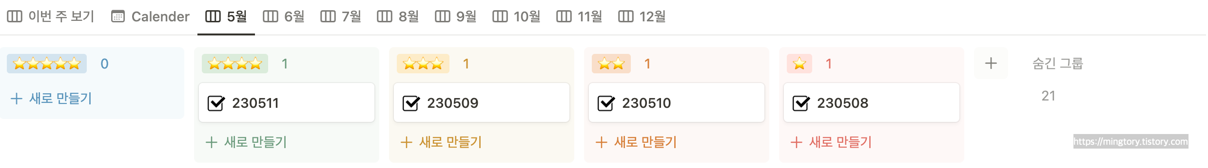 | [Notion/템플릿 공유] Habit Tracker (ver.2023 / 간단) (6) | 2023.06.12 |