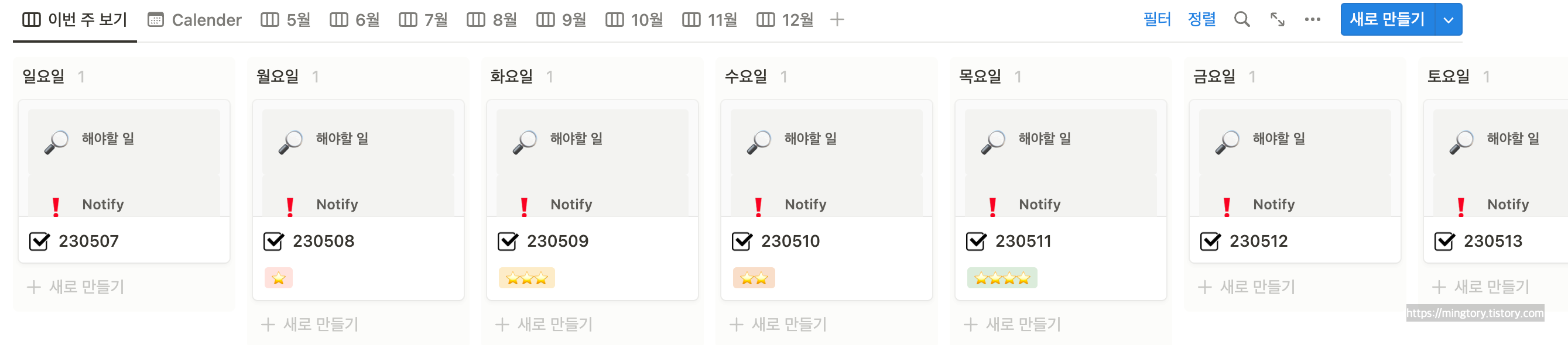 일주일 내가 아니라 특정 날짜에 해야할 일을 미리 써둘 때 쓸 수 있다.😉