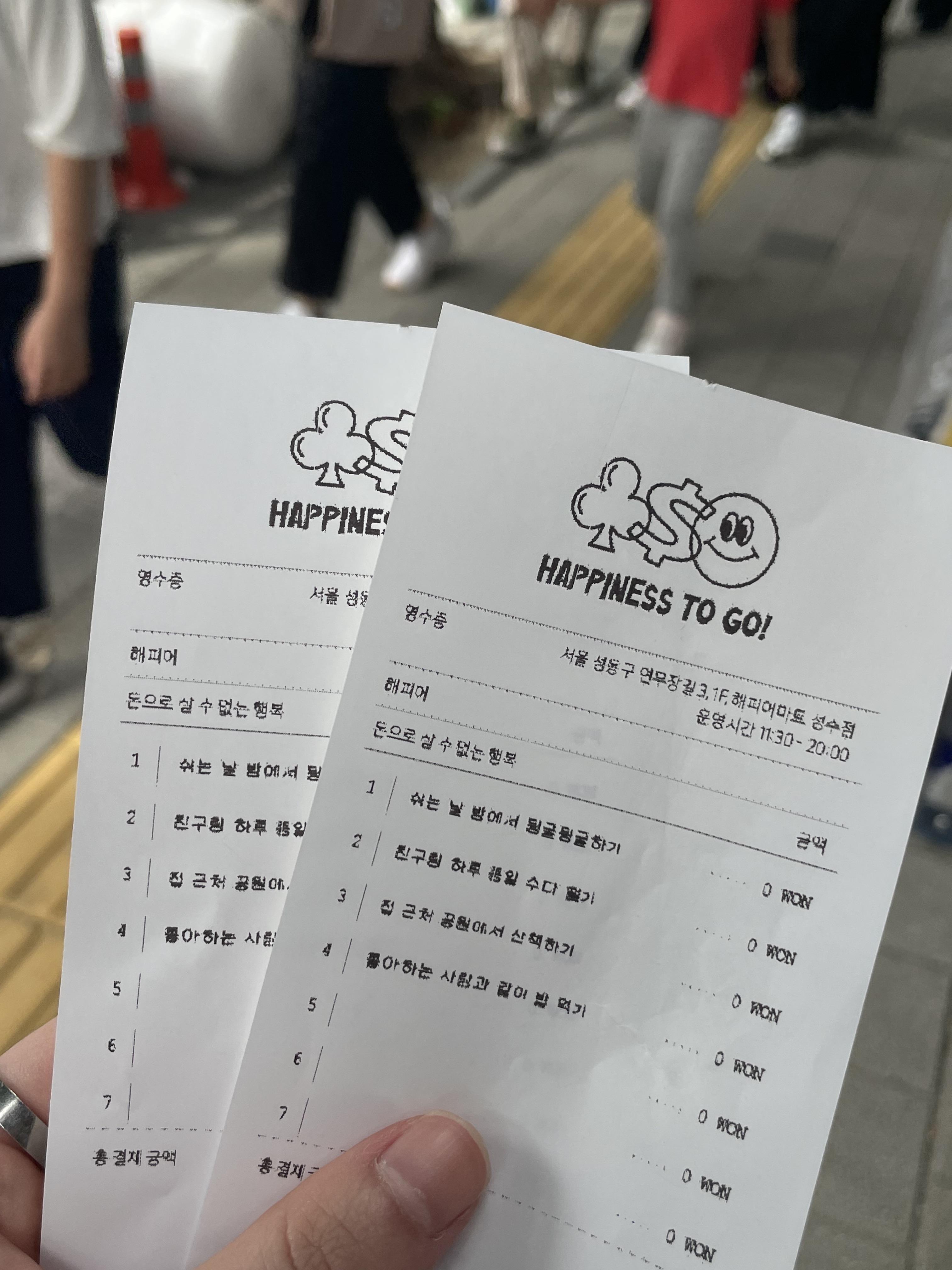 이 때 성수에 가서 사람들이 왕창 서 있길래 어떤 스토어에 가서 받은 종이었는데