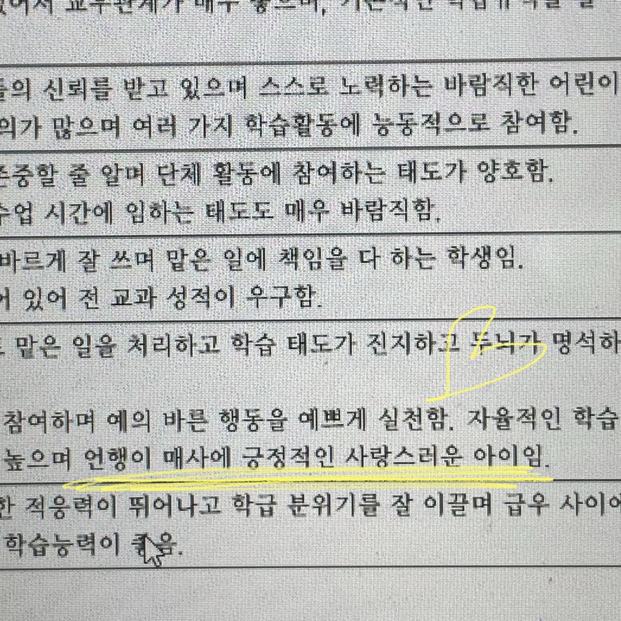 나 혼자 슥 열어본 생기부.. 왼쪽은 초5때 선생님인데 난 아직도 성함도 기억할 정도로 제일 좋아했던 선생님임 ㅠ