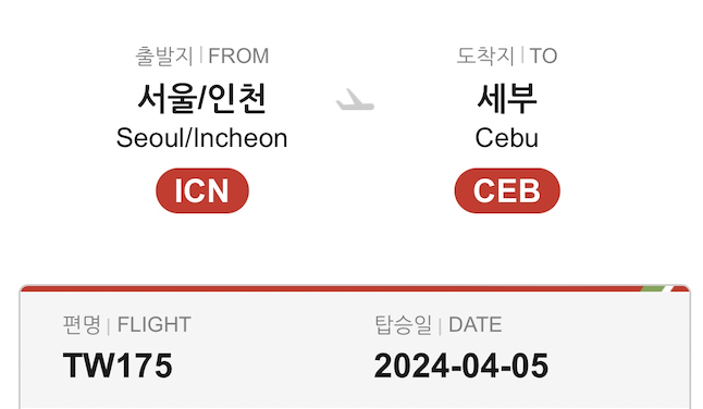 후.. 이럴거면 그냥 대한항공 타는 게 맞았나.. 싶긴 하지만 세부 가는 대한항공 티켓이