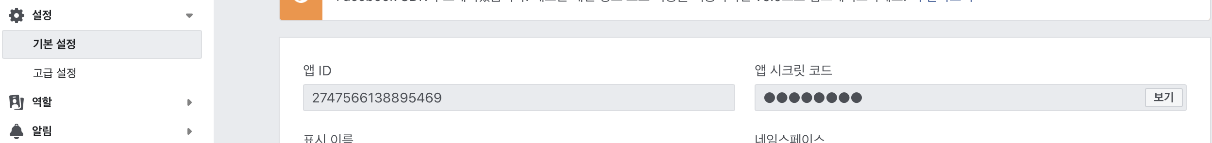 Firebase ➡️ facebook 사용 설정을 누르면 앱 ID와 비밀번호를 줘야하는데 그건 facebook for developer - 설정 - 기본설정 에 나와있으니 복붙하면 된다