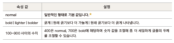 - 글자 굵기를 조절하는 속성