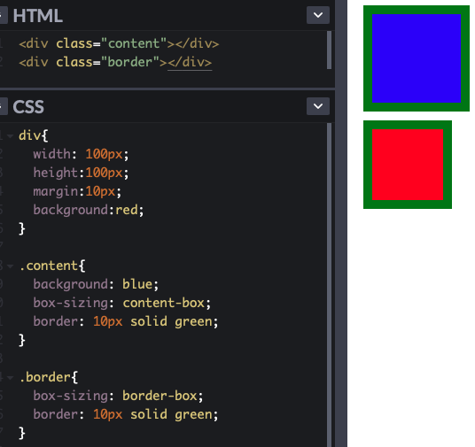 - border-box : 테두리를 기준으로 크기를 정함